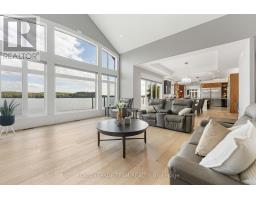 Substantial custom waterfront home offering exceptional scale, privacy, and quality. Approximately 2,800 sq ft per level with impressive volume throughout, with 10ft ceilings and soaring 19ft vaulted ceiling enhancing the home's scale and openness. Complemented by a 1,300 sq ft triple-bay garage. Recently installed Glow Getters exterior lighting enhances curb appeal and creates a striking nighttime presence. Set on west-facing direct waterfront with tranquil water views at the rear and open fields at the front, this property is located on a private road shared with six residences, offering a mature and private setting. The thoughtfully designed kitchen offers a highly functional dual-sink layout and a complete suite of premium integrated appliances, including dual refrigeration and a Bosch built-in coffee station. Interior finishes include oversized porcelain tile, engineered hardwood throughout, and triple-pane windows, selected for quality, comfort, and timeless design. A Generac generator provides peace of mind. Ideally positioned approximately one hour from Ottawa's West End, with convenient access via Hwy 17, 25 minutes to Renfrew Hospital, and 20 minutes to Pembroke Regional Hospital and major shopping. Close to Whitewater Brewing Co., Oaks of Cobden Golf Club, beaches, Algonquin Trail access, and quality local schools. A rare offering combining scale, privacy, and lifestyle. (id:16397)