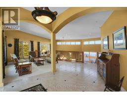 EXCEPTIONAL RIVERFRONT PROPERTY Perched safely above the Ottawa River this substantial highly customized home is designed to capture breathtaking views with private river access. Very private 1.59 acre property with 200ft riverfront. 180 degree views up & down river with fabulous city skyline vistas to the east. 4960 sqft of living space above grade plus over 2000 sqft finished space in the walkout lower level. Unassuming entry loft level opens to large open concept space as you descend the stairs giving an indication to the scale of this home. Artisan built natural stonewalls respect the rocky terrain. Customized at every corner & curve each space takes advantage of walls of windows to feature views of river & Gatineau Hills and the customized gardens all around the property. Great Rm has lofty ceilings w/skylights, fireplace, and circular staircase to the Recreation Room below. Kitchen is central to Dining & Family Rm. This well equipped Kitchen is perfect for entertaining. Very large Dining Room is accented by natural stone walls and arches. Family Room next to the Kitchen offers lovely garden views with afternoon sun & a fireplace. Spa space offers hot tub, sauna, rain shower + bathroom. Primary Bedroom suite has it all: corner windows w/views of the city skyline, deck, sunken Library, 5pc Ensuite & spacious Walk-in. 2 main level secondary Bedrooms each have Walk-ins, 3 piece Ensuites & loft spaces accessed by spiral stairs. Finished walkout lower level provides for a 2nd Family Room with a bar, Recreation Room, Media Room, 2 additional Bedrooms, a 3 piece Bathroom, and another Office. There is also a workshop, two utility rooms, and several storage areas. Extensive landscaping w/rock gardens, Trex decks, stairs to rocky shore & dock. Rare offering. 4 bay drive through garage. Generac generator for automatic transfer to the whole home if Hydro goes out. Located in Rural Kanata North along millionaires row, just minutes to many amenities. (id:16397)