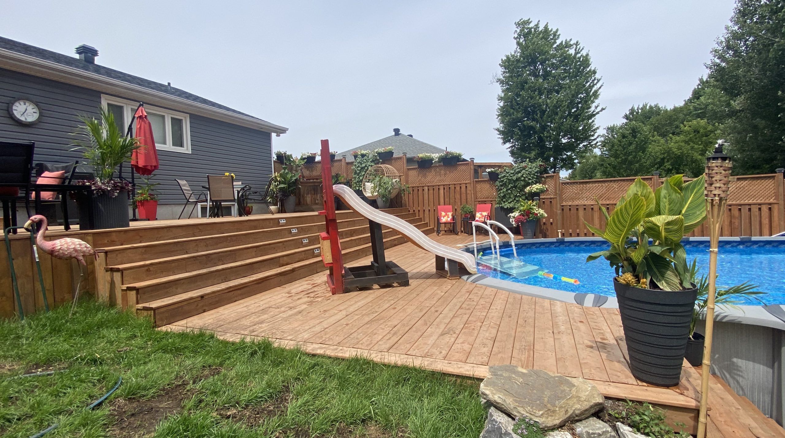 THIS AMAZING BUNGALOW blends country living with city amenities offering the best of both worlds – rural tranquility paired with modern convenience. Highlighted by stunning VAULTED CEILINGS creating an open ambiance that amplifies natural light throughout the main living area and boasts newly finished hardwood flooring. Featuring a well-designed floor plan this 3+1 bed/2 bath home (w/4pce adjoining primary bed ensuite + walk in primary bed closet) combines comfortable living with ideal space for relaxing or entertaining. Charming and functional finishes can be found throughout, such as; an OVERSIZED KITCHEN ISLAND providing ample countertop space for meal prep and casual dining, a thoughtfully INTEGRATED DESK AREA perfect for helping with homework, or simply enjoying a quiet morning coffee overlooking your picturesque backyard, also a large mudroom that couples as a walk-thru to the attached garage and a few steps into the OVERSIZED DETACHED GARAGE. Whether hosting friends or enjoying a quiet evening, the lower level provides plenty of space for family gatherings and features a WET BAR and a mini fridge that elevates the basement into a true entertainment hub. You will no doubt be impressed by the private WOODED BACKYARD OASIS, a truly serene landscape that offers a perfect blend of natural beauty and functional outdoor living AND is literally steps to the PAX TRAIL a beautiful WALKING TRAIL with benches and a scenic VIEW OF THE CASTOR RIVER! The backyards thoughtful landscaping and relaxation features include loads of PRIVACY with FENCING and a massive TWO-TIERED DECK, a heated POOL and a true 8-person HOT TUB, with loads of space for gardening. Nestled on a CUL-DE-SAC in a quiet family friendly neighbourhood in the sought after community of FOREST PARK, close to parks, water, recreation, schools, local amenities and minutes to the 417. Roof 18, Pool 21, Rear Deck 21, Hot Tub 20, A/C unit 20, 48 HRS Irrevocable ON ALL offers.
